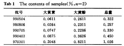 | 高效液相色谱法测定痔疮片中大黄素和大黄酚的含量 |