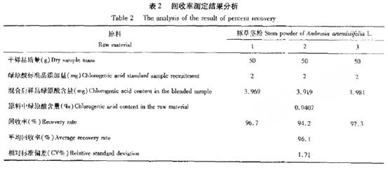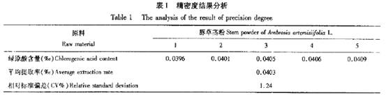 | 高效液相色谱法测定豚草茎中绿原酸含量的研究 |