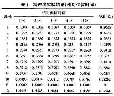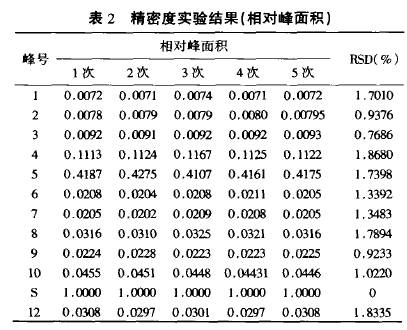 蔡光先 , 李顺祥 , 蒋炜 【摘要】 目的研究金银花超微饮片的HPLE指纹图谱,考察其有效成分及含量,为金银花的质控提供可靠方法。方法色谱柱为大连依利特公司Hypersil BDS C18(4.6mm×200ram,5vm)柱。流动相为甲醇一0.05%磷酸水溶液(9.8:90.2),柱温为25℃ ,流速为1.0ml/min,检测波长为246nm。结果 建立了金银花超微饮片的HPLE指纹图谱,标定了12个共有峰。结论利用HPLE指纹图谱可以较全面地控制金银花超微饮片的内在质量。 关键词 金银花超微饮片HPLE指纹图谱高效液相色谱法 金银花为忍冬科植物忍冬(Lonicerae iaponica Thunb)、红腺忍冬(L.hypoglauca Mip)、山银花(L.confusa DC)或毛花柱忍冬(L.dasystyla Rehd)的干燥花蕾或带初开的花⋯ ,湖南产灰毡毛忍冬(L.macranthoides Hand.一Mazz)E2]将列入新版药典。本品为传统中药,具有清热解毒、凉风散热的作用。本实验对13批不同地区的商品金银花药材制成的超微饮片进行测定,并进行方法学考察,初步建立了指纹图谱,标定了12个共有指纹峰,其中绿原酸为对照品。 1 仪器与试剂 岛津(Shimadzu)LC一10A高效液相色谱仪(配有Lc一10Avp输液泵,SPD一10Avp紫外检测器,柱温箱)。绿原酸对照品(chlorogenic acid,批号0753—200111,供含量测定用中国药品生物制品检定所提供),甲醇为色谱纯,水为双蒸水,其余试剂为分析纯。13批商品金银花药材购自四川、杭州、甘肃、北京、湖南等地,经湖南中医药研究院中药研究所生药室谢昭明研究员鉴定分别为忍冬(Lonicerae iaponica Thunb)、灰毡毛忍冬(L.macranthoides Hand.一Mazz),分别加工成超微饮片。 2 方法与结果 2.1 供试品溶液的制备精密称取超微饮片粉末0.2g(共13种),置50ml量瓶中,加50% 甲醇约50ml,超声处理30min,放冷,用50% 的甲醇精密加至刻度,0.45tan微孔滤膜滤过,即得。 2.2 对照品溶液的制备精密称取绿原酸对照品4mg于50ml的棕色容量瓶中,加50% 的甲醇定容至刻度,摇匀,即得(10℃ 以下保存)。 2.3 色谱条件 色谱柱为大连依利特公司Hypersil BDSC18柱(4.6mm×200min,5tam)。色谱条件:流动相为甲醇一0.05%磷酸水溶液(9.8:90.2),柱温为25℃ ,流速为1.0ml/min,检测波长为246nm。该条件下金银花超微饮片获得好的分离,见图1。 2.4 方法学考察 2.4.1 精密度实验取同一份金银花(忍冬)超微饮片的供试品连续进样5次,比较共有指纹峰的相对保留时问和相对峰面积,结果表明各共有指纹峰的相对保留时问和相对峰面积基本一致。符合指纹图谱的检测要求。见表1、表2。 2.4.2 稳定性试验取同一份金银花超微饮片的供试品溶液,分别在制备后1⋯4 8 16、24、48h进样,比较各共有指纹峰的相对保留时间和相对峰面积,结果表明各共有指纹峰的相对保留时间和相对峰面积基本一致,RSD<2% ,表明样品在48h内稳定,符合指纹图谱的检测要求。 2.4.3 重现性试验取同一批金银花(忍冬)超微饮片样品5份,按供试品溶液制备方法分别制备供试品溶液,比较各共有指纹峰的相对保留时间和相对峰面积,结果表明各共有指纹峰的相对保留时间和相对峰面积基本一致。符合指纹图谱的检测要求。 2.5 指纹图谱的建立 2.5.1 共有指纹峰的标定采用相对保留时间标定共有指纹峰:以图谱中绿原酸为参照物(s),